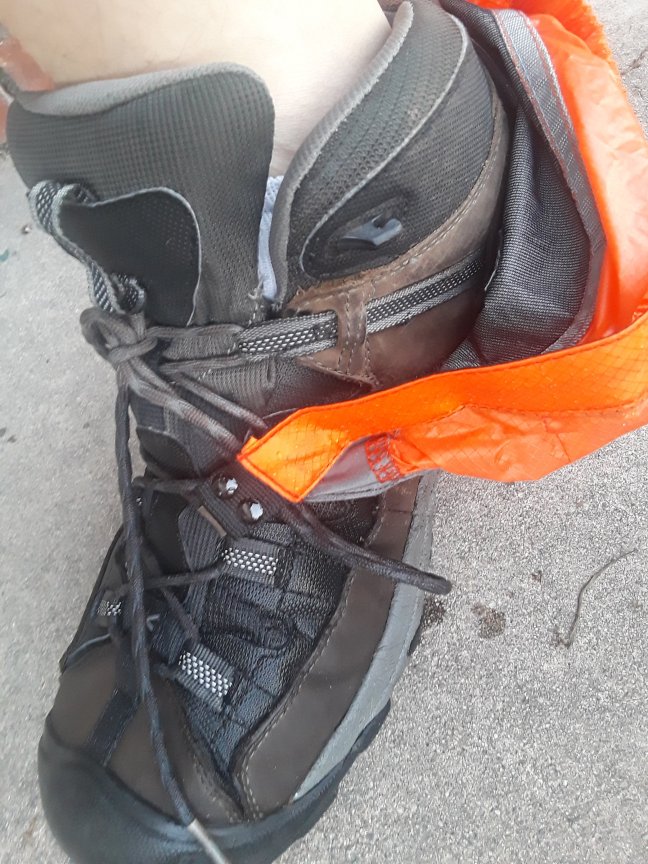 So, if I want gaiters, I may have to go with the Altra Trail Gaiter which is made for them. Unfortunately, the description of the ATG’s conspicuously left “water” out of the list of things they repel.