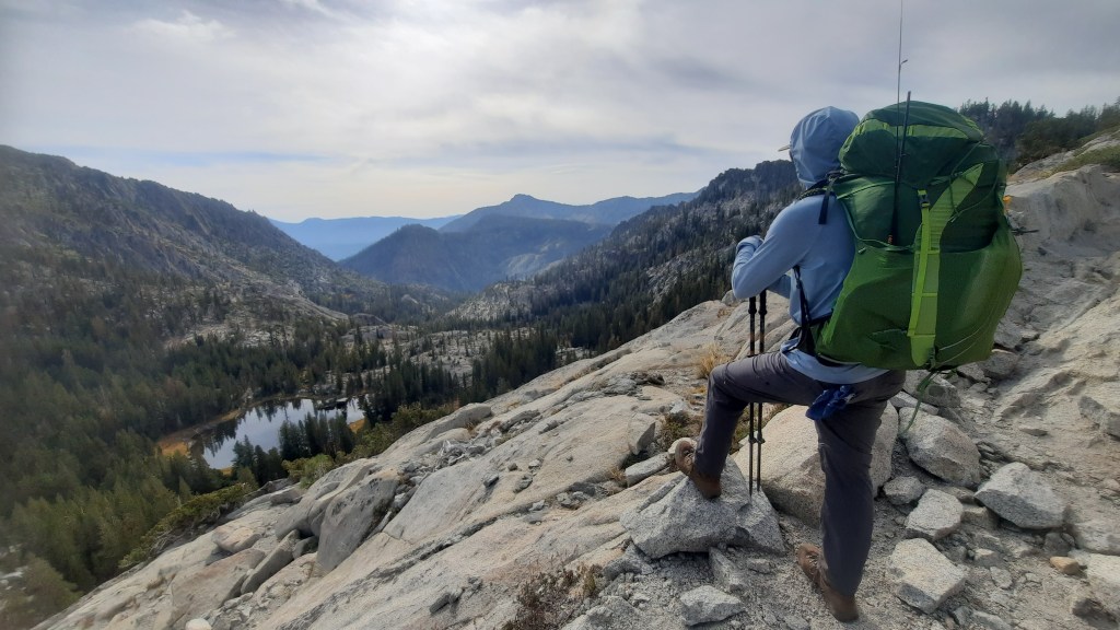 Now, I say “top out” but you mostly keep ascending. Incredible views open up to the east above Grouse Lake. It was here that I felt more like we were in Desolation Wilderness. The Fall colors were really popping and stood out against the dark greens of the brush and walls of white granite.