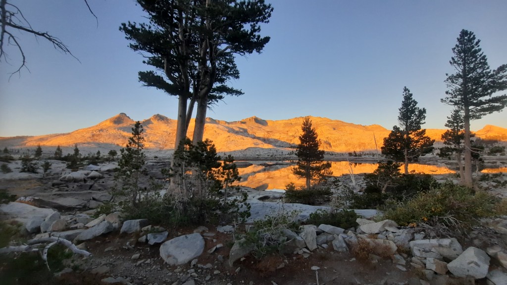 The hike out begins with a fairly long walk along the shore of Lake Aloha. It is a photographer’s dream come true – there’s just nowhere to look that doesn’t beg for a picture. After Aloha there were four more lakes between our camp and our end point at Echo Chalet: Lake of the Woods, Tamarack, and then Upper and Lower Echo Lakes.
