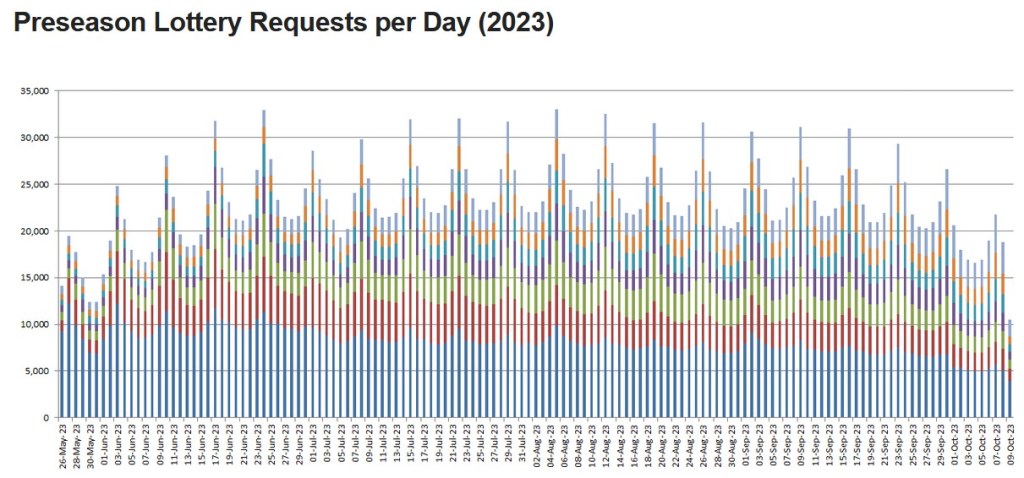 To avoid overcrowding, permits are required to ascend the route beyond the base of the Sub Dome. Before this system was put in place in 2010, Half Dome could be overrun by 1,200 visitors / day. Since 2010, a maximum of 300 hikers are allowed (about 225 day hikers and 75 backpackers) each day. At $10 / permit application plus another $10 / person on the permit, the park is making over $6,000/day off of Half Dome hikers each year (plus the NPS entrance fees and occasional park registration fees required to even get to the trailhead).